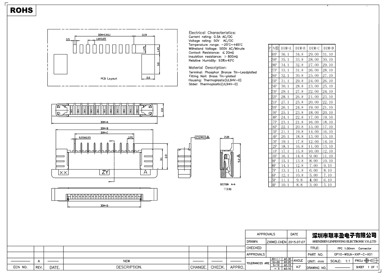 產(chǎn)品簡介品名:FPC連接器規(guī)格:臥式貼片/90°間距:1.0mm/下接觸PIN數(shù):4P-30P高度:2.0mm