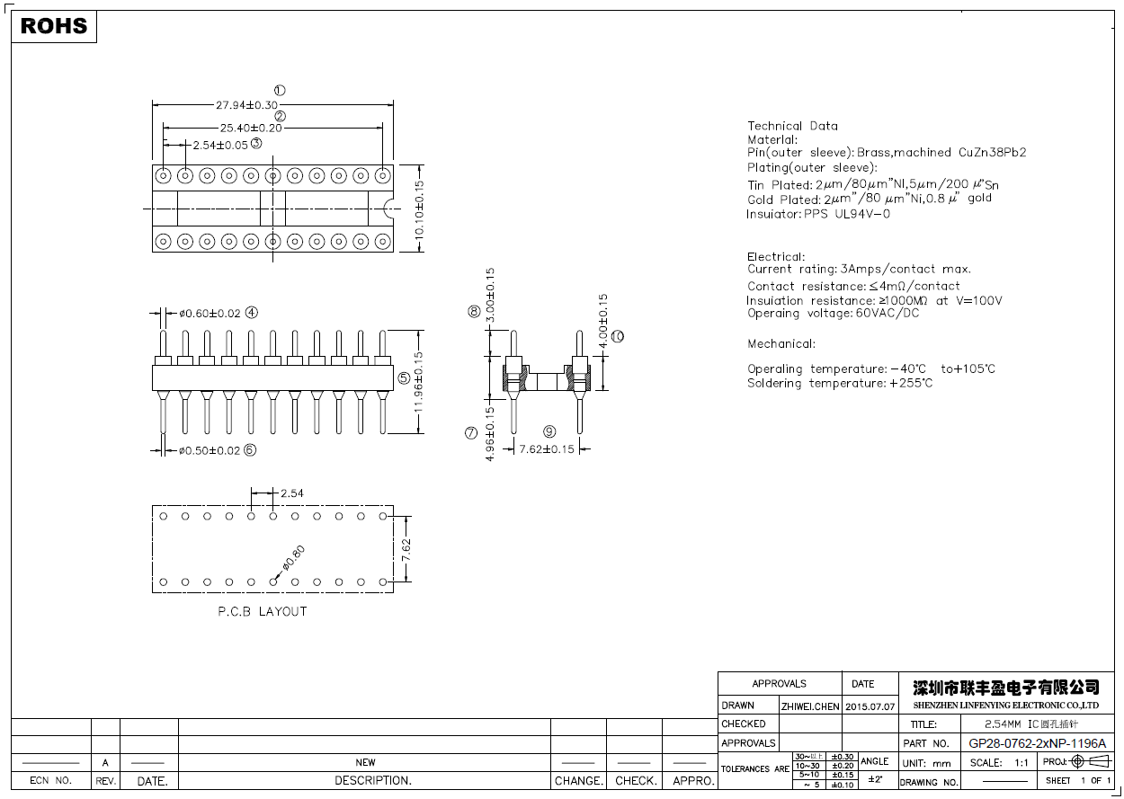 產品簡介品名:排針規格:插件/直式180°間距:2.54mmPIN數:24-52PIN備注:IC圓孔系列