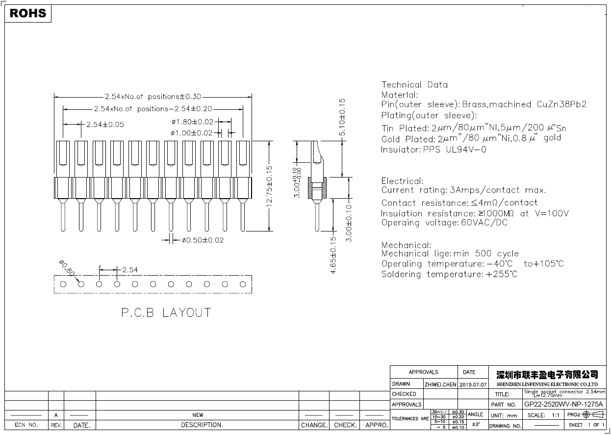 產品簡介品名:排針規格:插件/直式180°間距:2.54mmPIN數:2-40PIN備注:圓孔排針系列