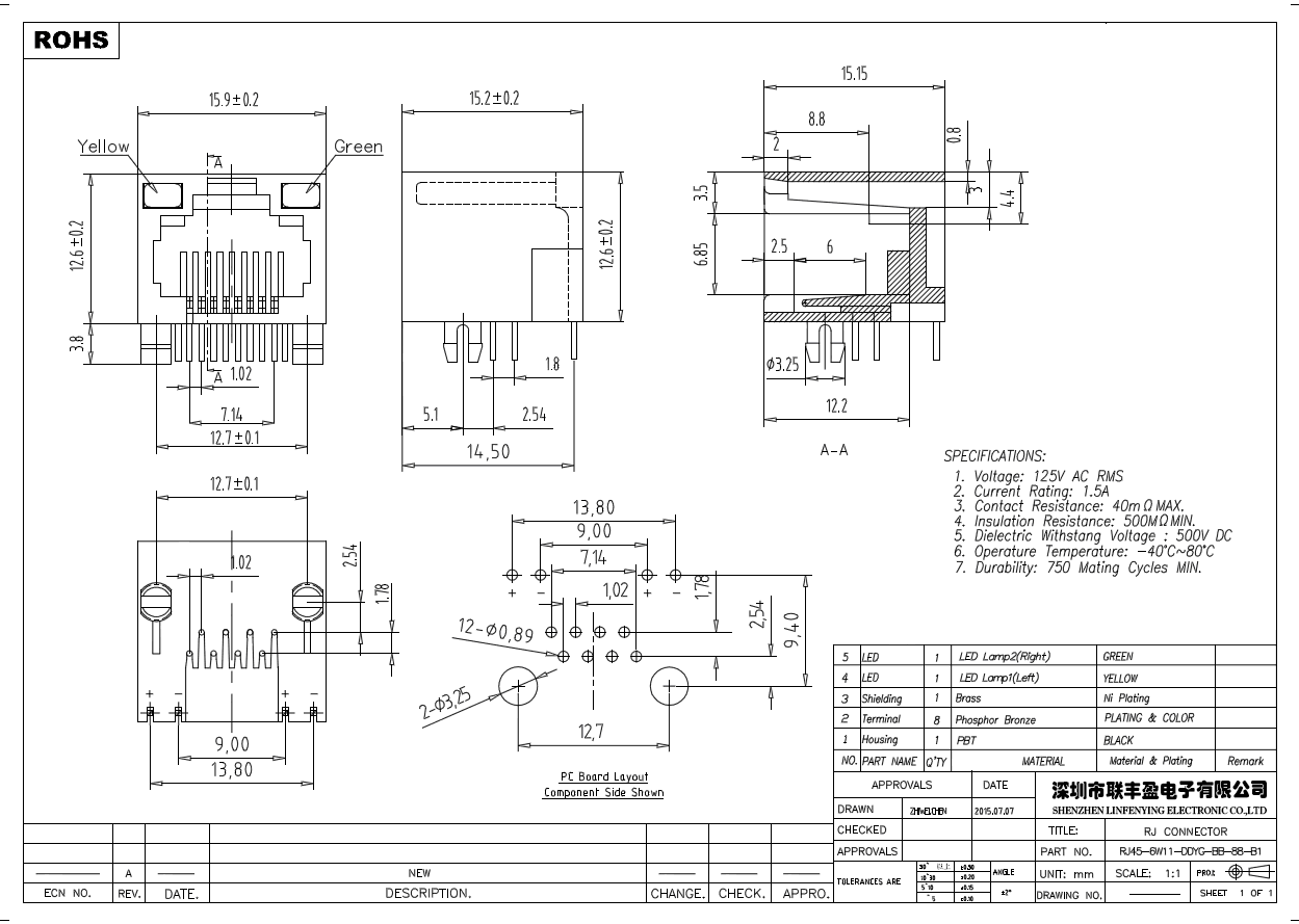 RJ45/RJ11 網絡連接器系列產品技術參數