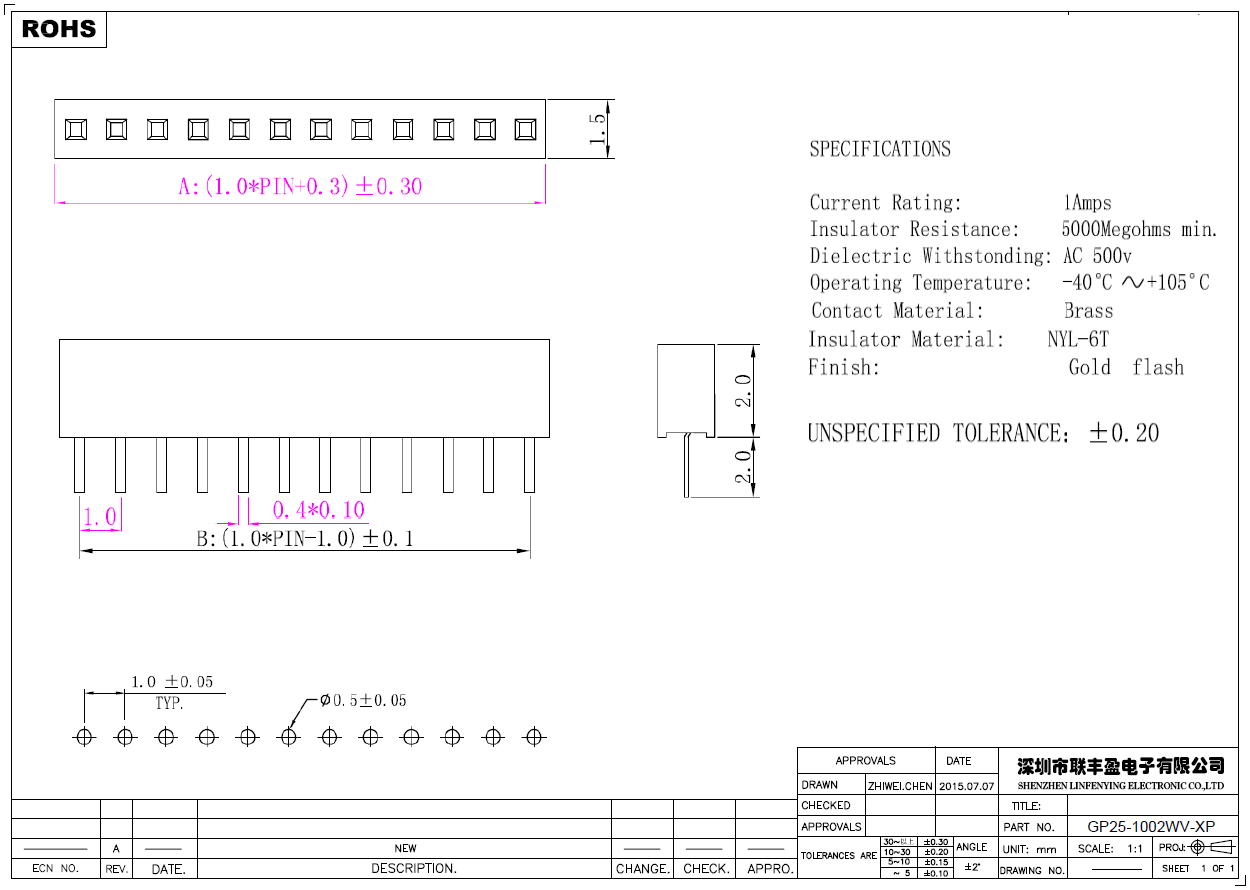 產(chǎn)品簡介品名:排母規(guī)格:插件/直式180°間距:1.00mmPIN數(shù):2-40PIN備注:排母系列