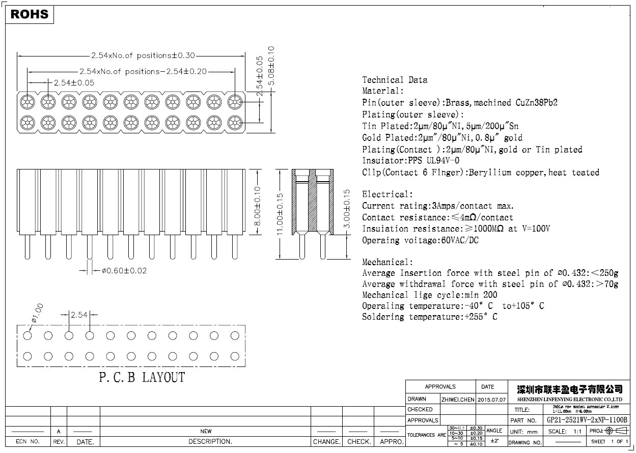 產品簡介品名:排母規格:插件/直式180°間距:2.54mmPIN數:2-40PIN備注:圓孔排母系列
