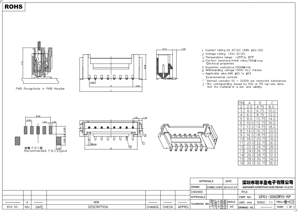 產(chǎn)品簡(jiǎn)介品名:線對(duì)板連接器規(guī)格:立式/SMT180°間距:2.00mmPIN數(shù):2-16PIN